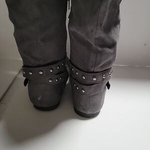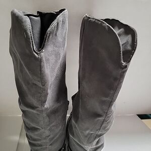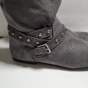 SO Rebecca Grey Women tall Trey suede boots Sz 11 partial zip up