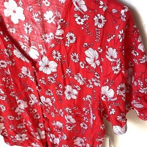 SO Red Floral button down front tie bohemian Top, Size M, NWT