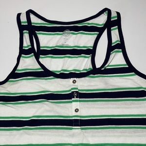 SO Cute Retro VTG Vintage Blue & Green Striped Ringer Racerback Tank stop