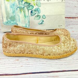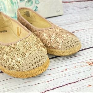SO Round Toe Ballet Flats Sequin Espadrille Blush Gold Size 8
