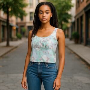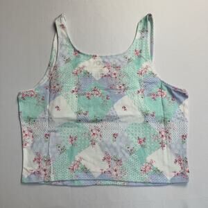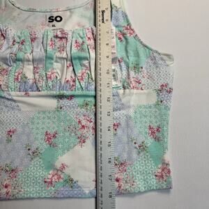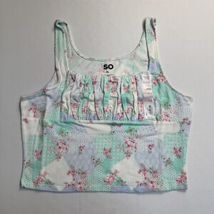 SO Ruched Front Tank Top Juniors Size XL Blue Flower Print