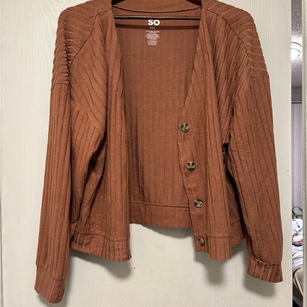 SO Rust Ribbed Button-Up Cardigan