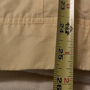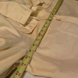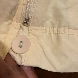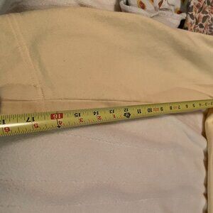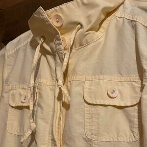 As you can see from my title, I almost don't even know how to describe this!! It's a blend of all the favorites you love to wear - it's a jacket, meets hoodie, meets the softest terry cloth towel, meets stylish zip up - it's just neat!! And the color is very beautiful, which I'd call a pastel or baby yellow (I took some pics in various lights to show how shade can vary). It's soft but vibrant. This is absolutely like new! We store purchased it brand new, but it's just a bit tight on me and has been sitting. It's wasted here because someone will adore this! The inside feels like the a fabulous terry cloth, a bit like the jogger material. Yet, the chest and pockets are a soft cotton and appear almost jacket like, but where they hit the sleeves, the material turns into what feels like a soft hooded sweatshirt. I tried to photograph the various aspects as best I could but please just reach out with questions.
