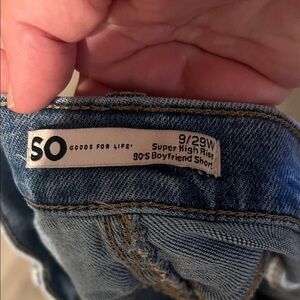 SO SZ 9 high rise boyfriend Blue Distressed Jean Shorts