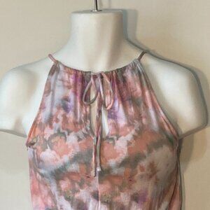 SO SZ L NWT Adjustable halter style multi watercolor print maxi dress