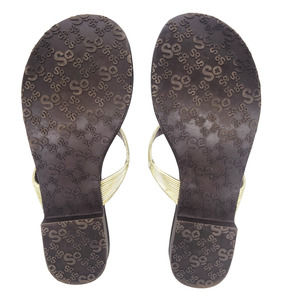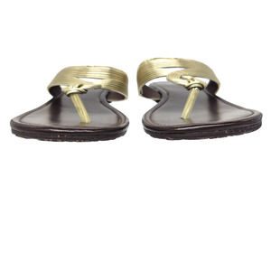 SO Sandals Womens 8 Gold Brown Strappy Summer Rubber Comfy Dressy Thong Flat