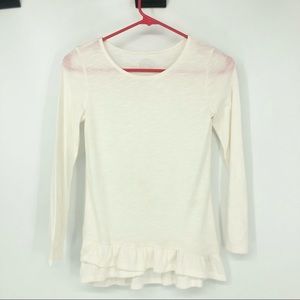 SO Size 10 Off White Cream Super Soft Long Sleeve Asymmetrical Hem Ruffle Tee pre-owned in great condition. Elegant and great to dress up or down. Thanks for shopping ❤️🛍!