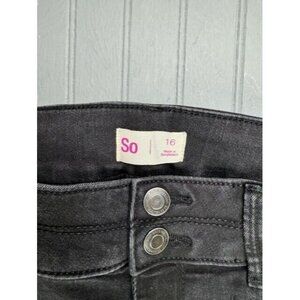 SO Size 16 Womens Jeans Black Skinny Distress Raw Hem Low Rise Stretch