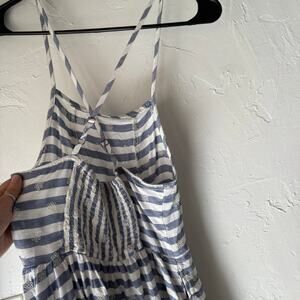 SO Size Medium Striped White Blue Racerback Mini Dress Cottage Coastal