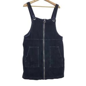 SO | Soft Corduroy Zip Front Cord Pinafore Utility Bib Coverall Mini Dress