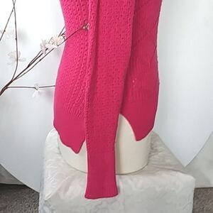 SO Sweater Hot Pink Metallic Thread Scoop Neck Tunic High Low Split Hem Soft S