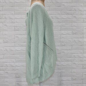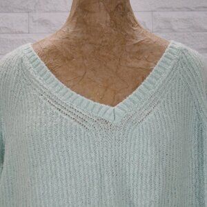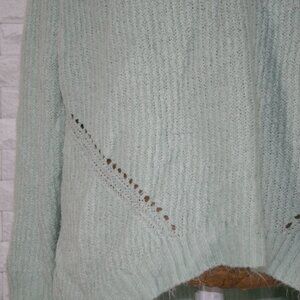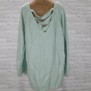 SO Sweater Knit Cut Out Oversized Criss Cross Back Asymmetrical Pale Green Large