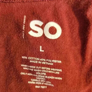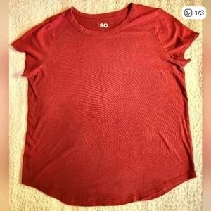 This size large T Shirt from SO, is a great basic for any wardrobe. In good pre-owned condition with some wash wear. The color is dark red.