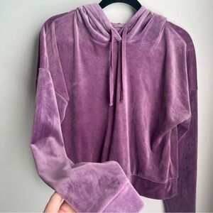 SO The Lounge Life Cropped Velour "Softest Hoodie" in Lilac, Purple - Large