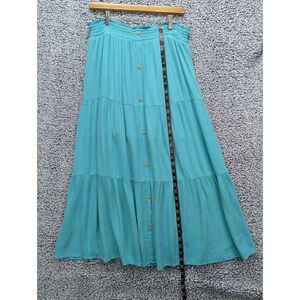 SO Tiered Button Up Maxi Skirt Size 18 Pull On Boho Fairy Grunge Hippie Blue