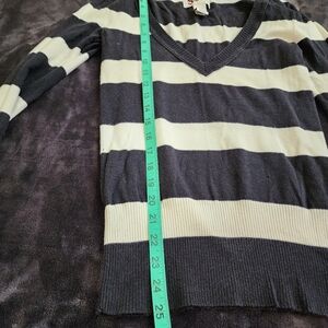SO Vintage Y2K Retro Black & White Striped V Neck Stretch Long Sleeve Sweater- S