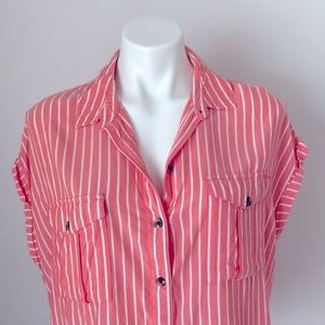 SO Woman Vertical Stripes Blouse Orange and White Color Size L. Preowned Good Condition
