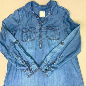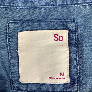 SO Women's 100% Lyocell Chambray Half Button Down Long Sleeve Top Shirt Size M