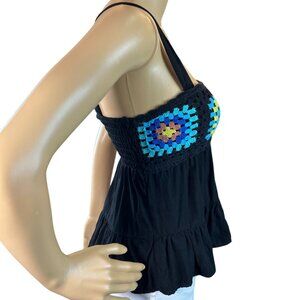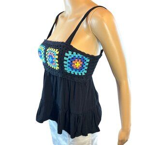 SO® Crochet Boho Babydoll Sleeveless Top in black Size Small
