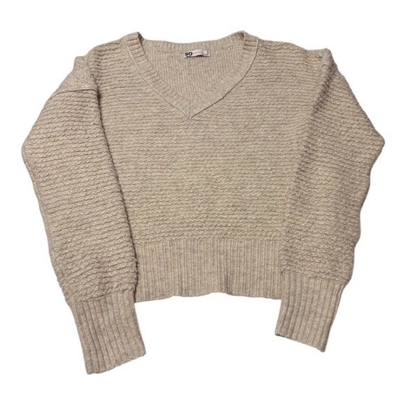 Chic V-neck sweater by SO. Soft knit texture. Ideal for layering.