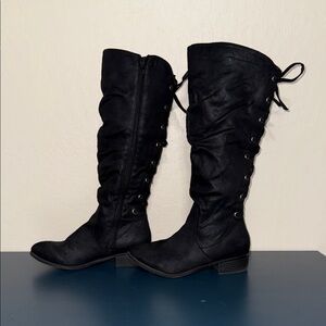 Chic and versatile over the knee boots. Sleek black design. Ideal for any outfit.