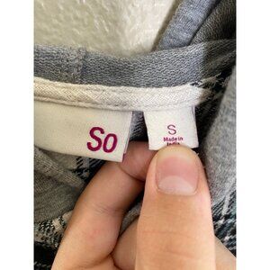 SO Womens Black Plaid Button-Up Hoodie Shirt Small 100% cotton long sleeve