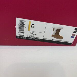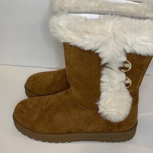 SO Womens Boots Size 6 Sophia Chestnut Faux Suede Fur-Lined Easy On