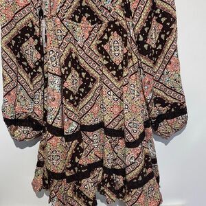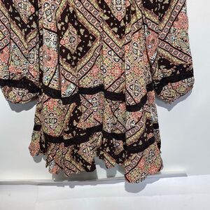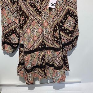SO Women's Brown Multi Lace Inset Tiered Long Sleeve Babydoll Dress Medium NWT