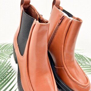 SO Women's Chelsea Side Zip Chunky Heeled Ankle Boots Size 7.5 Brown NWB