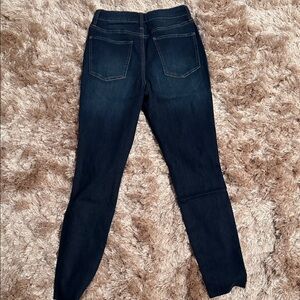 Trendy dark blue skinny jeans with stylish distressing. Perfect for casual wear.