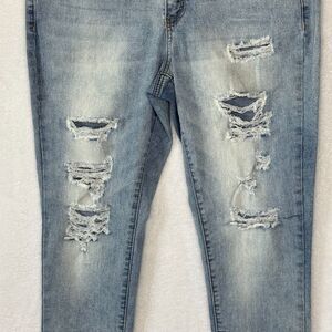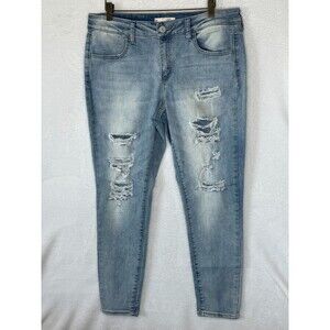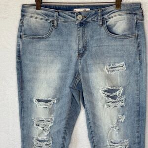 SO Women's Jeans Size 15/32 Light Wash Denim Low Rise Jegging Stretch Distressed