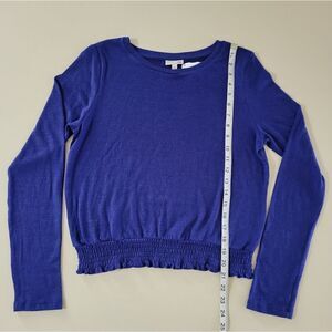 Women's Julien shirt by SO is double brushed and super soft and cozy. It features a crew neckline and a elastic smocked waistband. The rich and deep shade of royal blue pairs easily for work or denim for casual wear. This top is NWT.