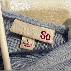 SO. Women’s Light Blue Ribbed Back Long Sleeve Top Size Large