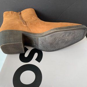 SO Women’s Old Fashion Fringe Western Ankle Boots, Cognac, Size 9.5, New in Box