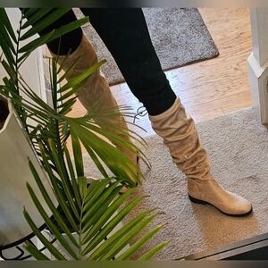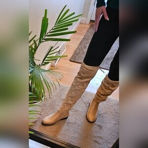SO Womens Thigh High Boots TAN size 8 | Winter Fall Pull-on Tie-back Boots