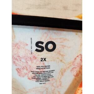 SO Women's White Orange Floral Sleeveless V-Neck Bodycon Mini Dress Size 2X NWT