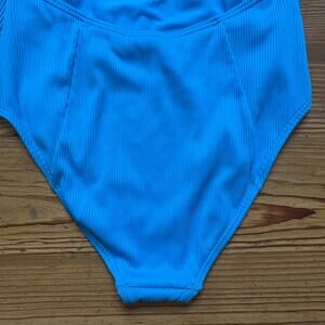 SO aqua blue ribbed lace open back moderate coverage one piece swimsuit SIZE L