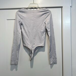 SO by Kohls light grey v-neck bodysuit size small. This bodysuit is in good condition and is super stretchy and comfy. Would look great with a pair of jeans, shorts, or even a skirt! Layer it for the perfect look!