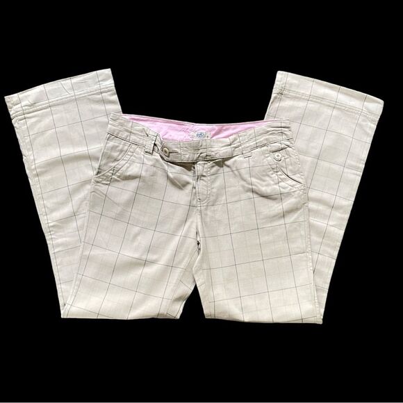SO cream, pink and brown plaid mid rise straight leg pants, light cargo style 13