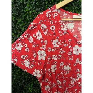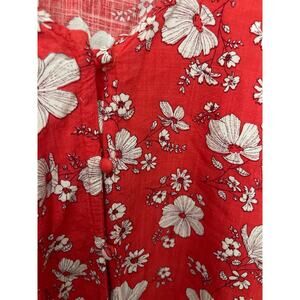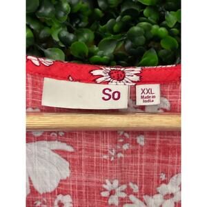 This SO floral blouse in women's size XXL features a V-neckline, short sleeves, and a pullover closure. Made from lightweight rayon fabric, it is perfect for travel, casual, workwear, or business occasions during the summer and spring seasons. With a classic fit and basic style, this blouse also includes a bow accent and is machine washable for easy care. The red color and floral pattern add a touch of femininity to this versatile and comfortable top.