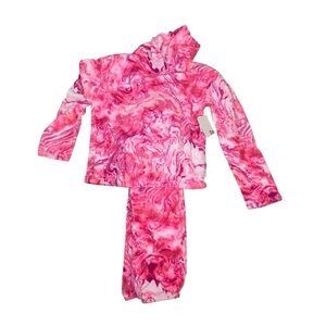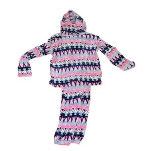 SO brand Cozy fleece set with pink and blue geometric design. Ideal for comfort and style. Tops are hoodies. Bottoms have elastic ankles. New with tags. Cozy and comfortable. Set of two! Size 14/16