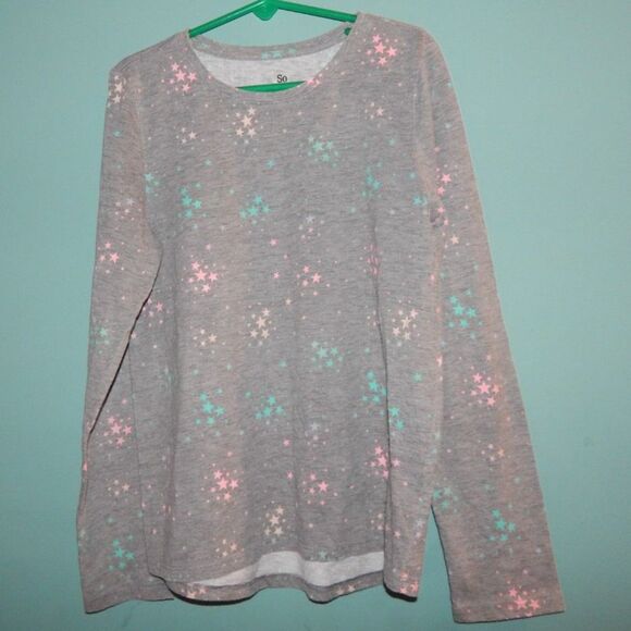 SO girls medium size 8 gray star print long sleeve shirt
