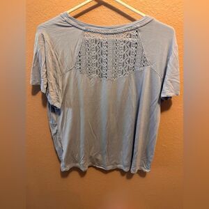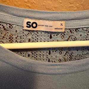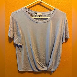 EUC: Has been worn and cleaned Beautiful grey top with knot on front and lace on the back Size XL Super soft material Measurements in photos