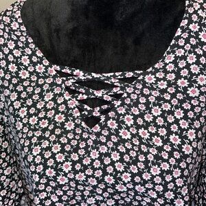SO heritage flower print cold shoulder boho top blouse Sz M