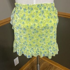 SO lime green white & blue floral ruffle mini skirt size s