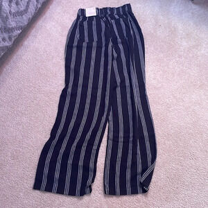 NWT SO wide leg pants Size small Black with white stripes 55% linen 45% rayon