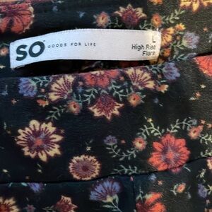 SO women’s large 12 14 leggings pants flare Black Floral print pull on high rise