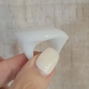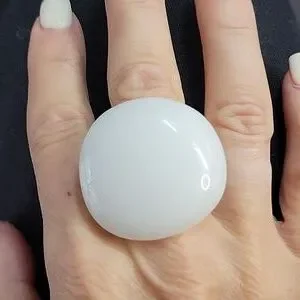 Bold white statement ring. Solid milky white, like milk glass. Comfortably contoured, 100% metal-free acrylic. Waterproof and great for anyone with allergies to metal.