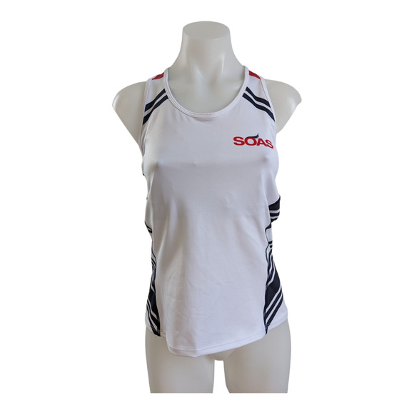 SOAS Womens Size Large Running Tri Tank White Racerback Cycling Pockets Sleeveless