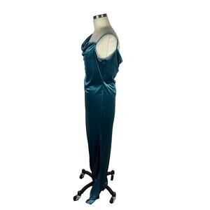 Dutch blue luxe velvet asymmetrical one shoulder maxi slip dress from Social Bridesmaids in size XS. New with tags. Social Bridesmaids 8213